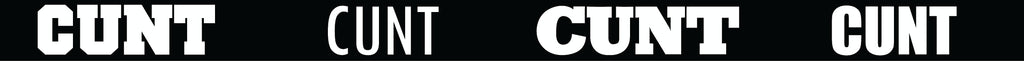 Made out of black silicone with "CUNT" printed around it four times in four different fonts. We did this so, wherever it falls on your wrist, it will still say Cunt. We're cunts like that